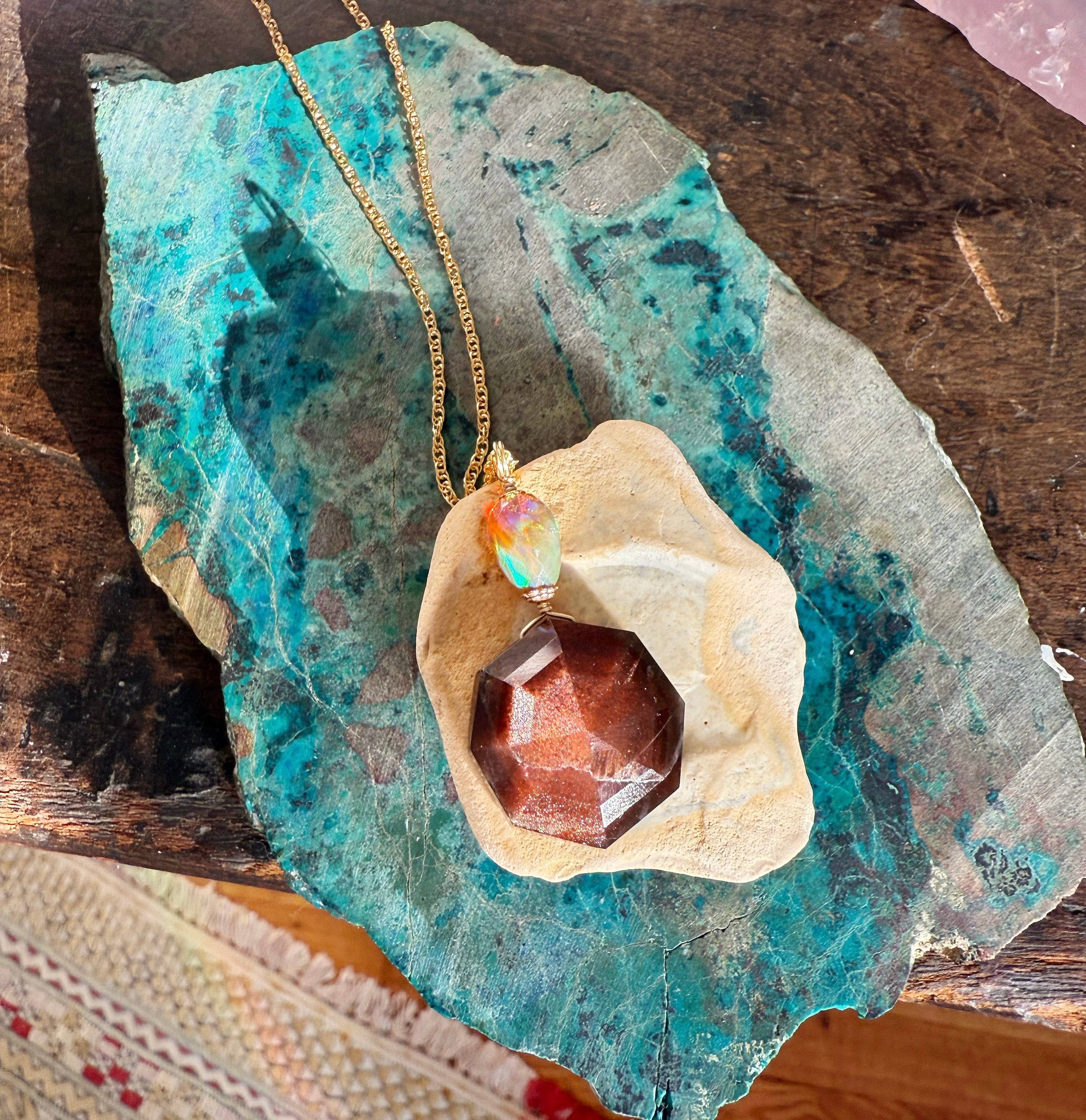 Looks like copper but is a star sapphire and is of the ultimate root weaving her web into the light of stars.