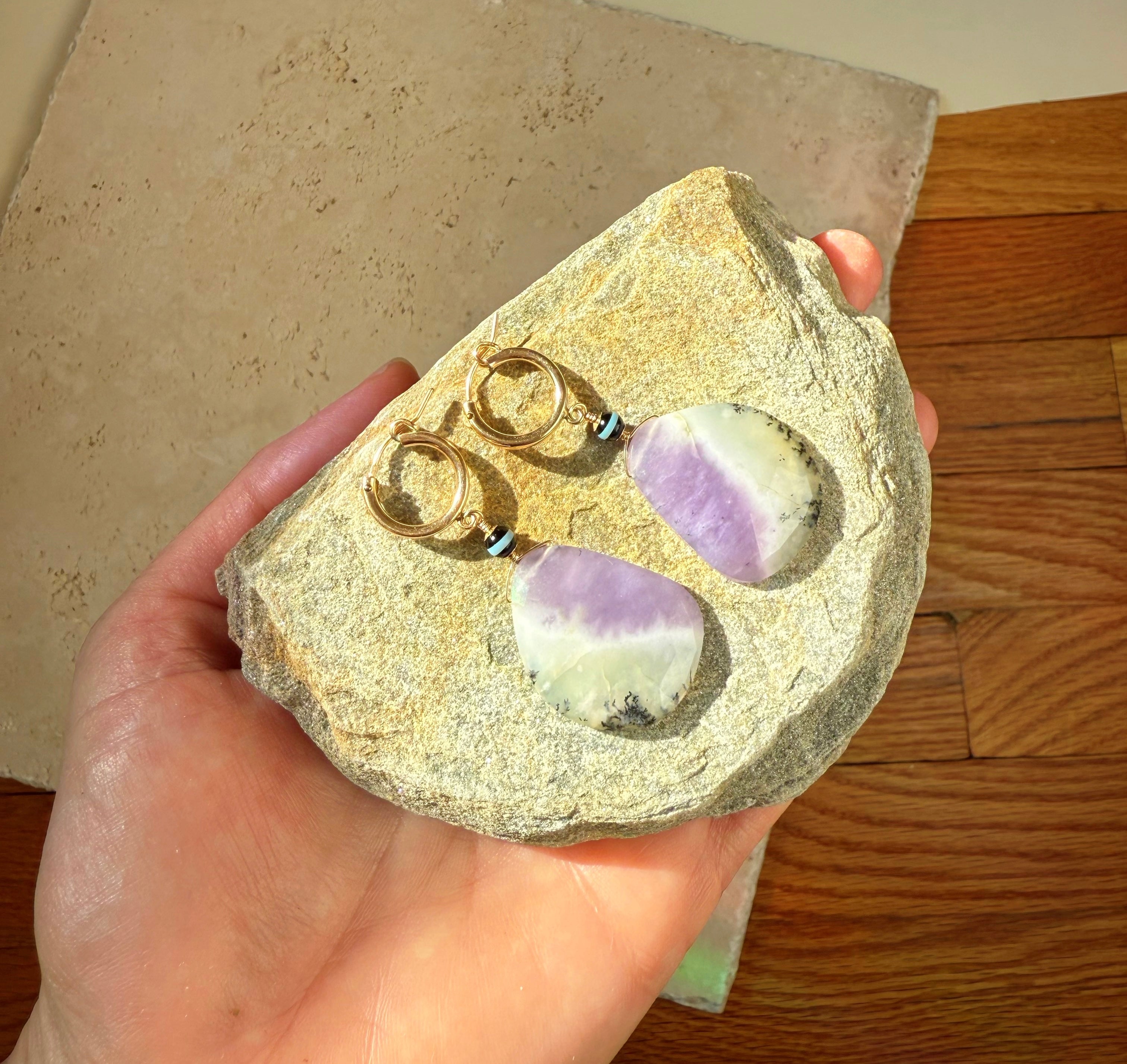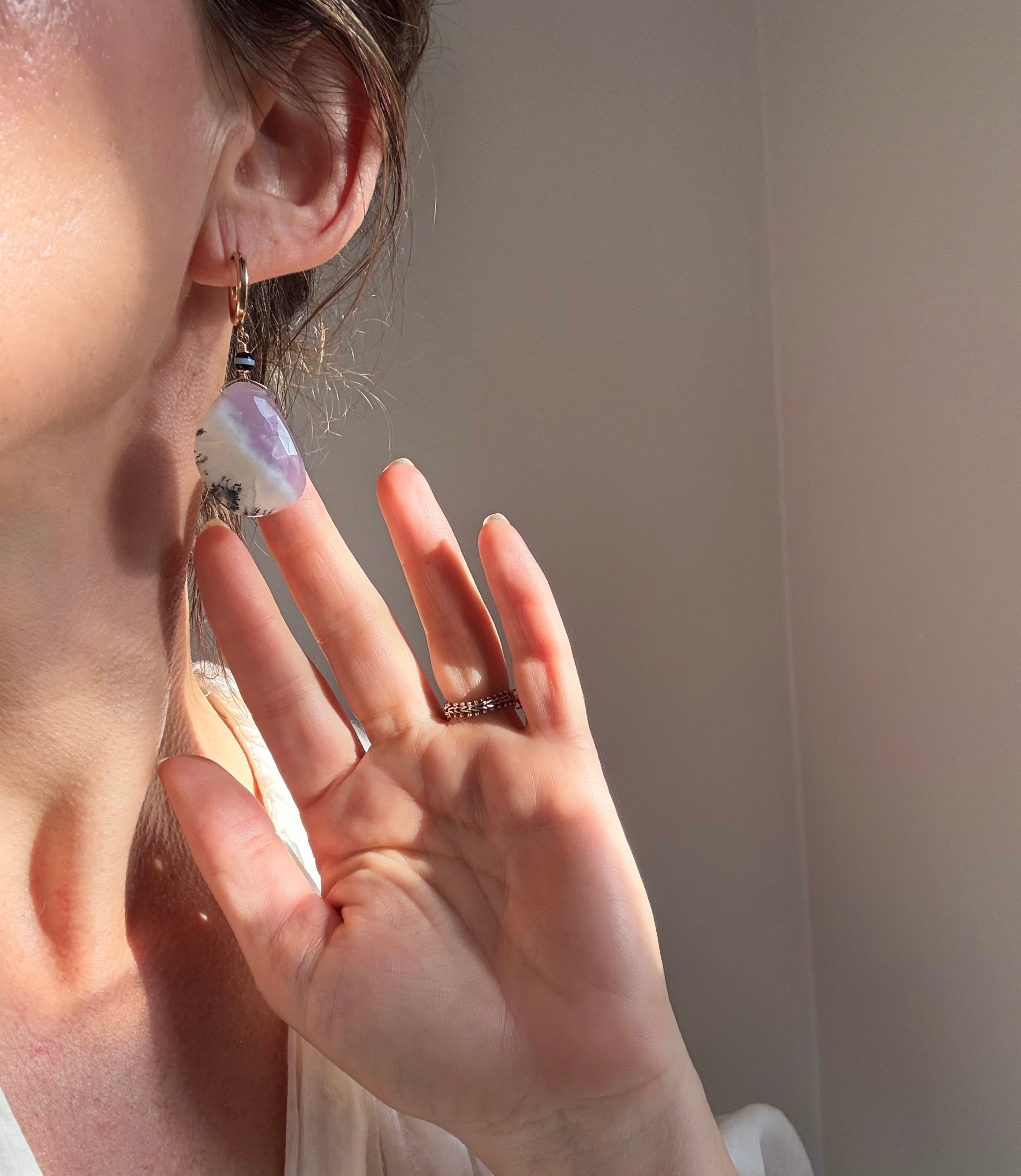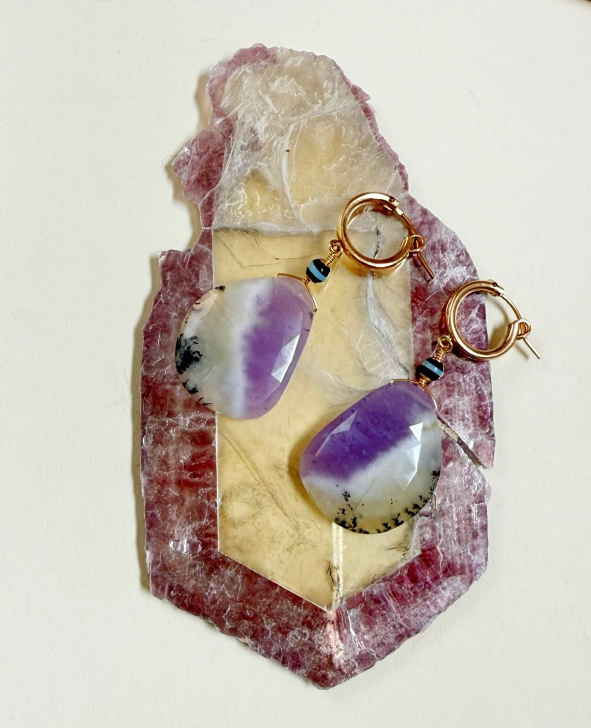 Made of Dendritic Agate, These stones look like dreamscapes of pale moonlight stained with dawn, lavender shadow meeting golden glow.