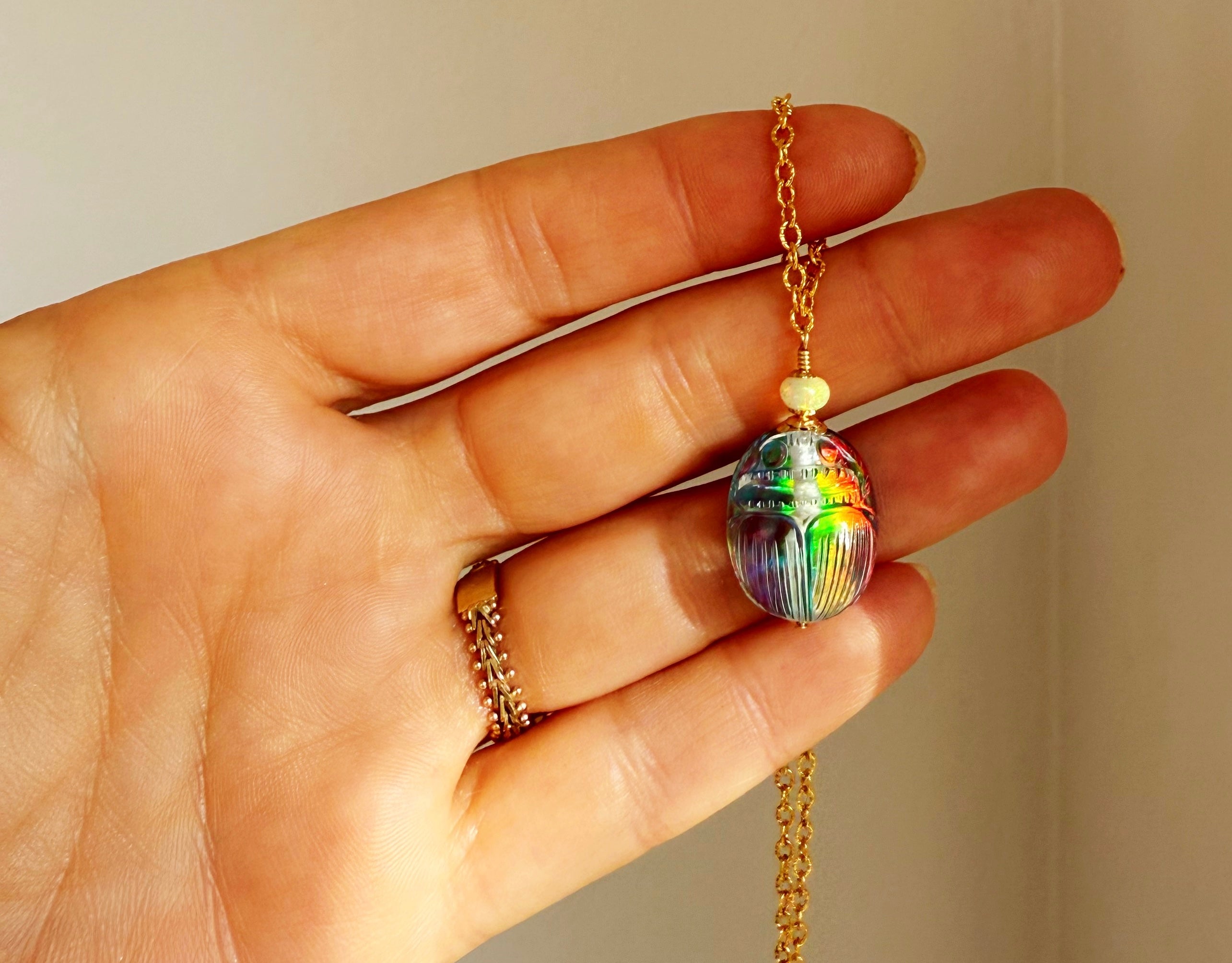 Together, the opal and scarab form a powerful talisman of light emerging from shadow and new life born through transformation.