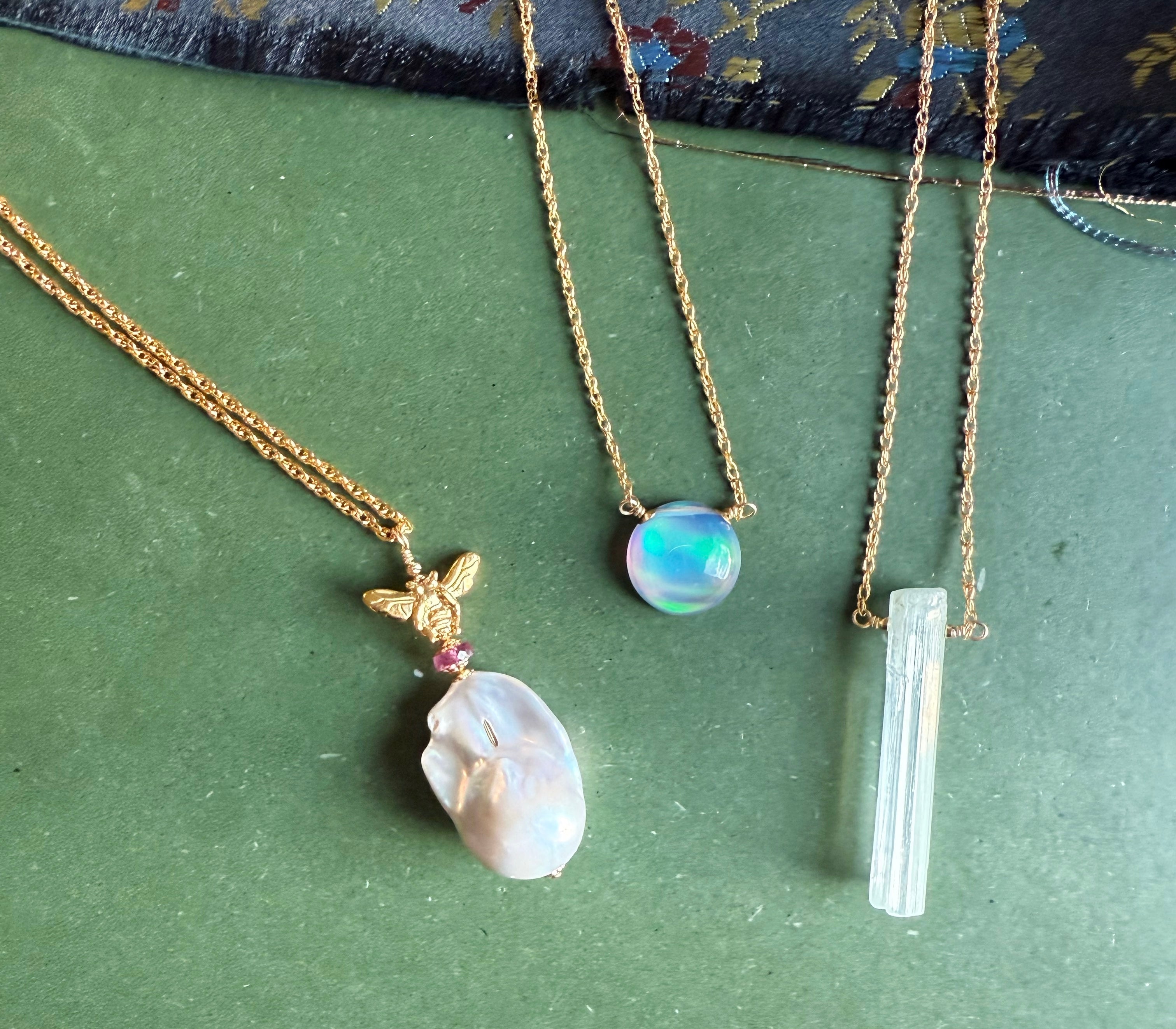 The grit is the catalyst for the formation of this beauty- a golden bee hovering above in the knowing of this....A talisman of devotion, fertility, feminine power, and the sweetness that lives inside resilience and pursuit of passion.