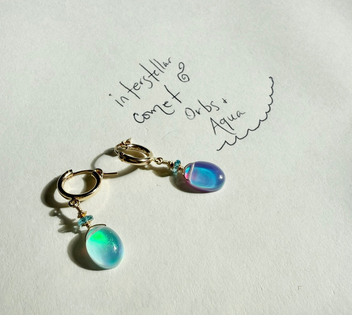 Orb is made of Opalite and these are on 14k gold fill hoops or sterling silver hoops