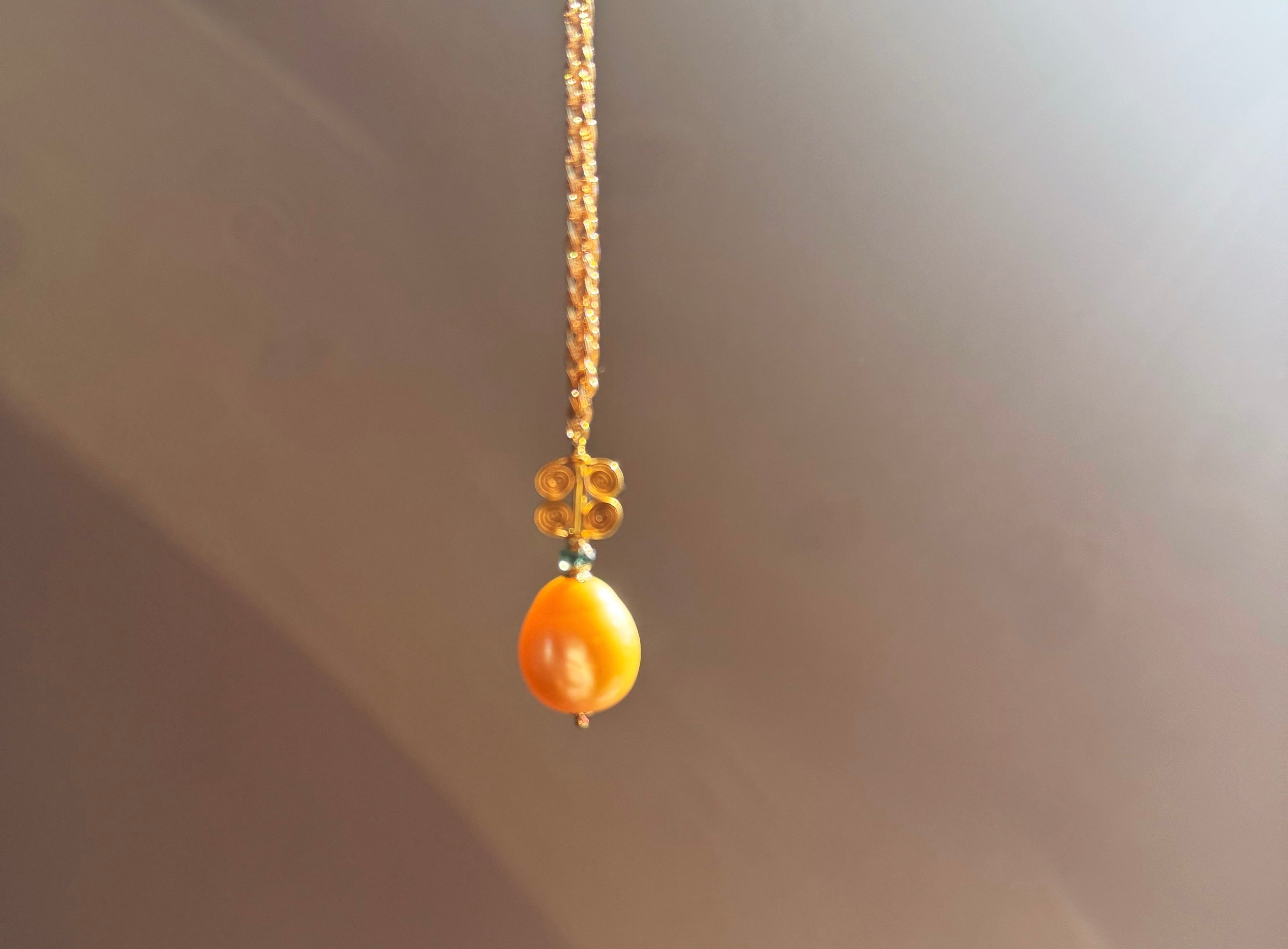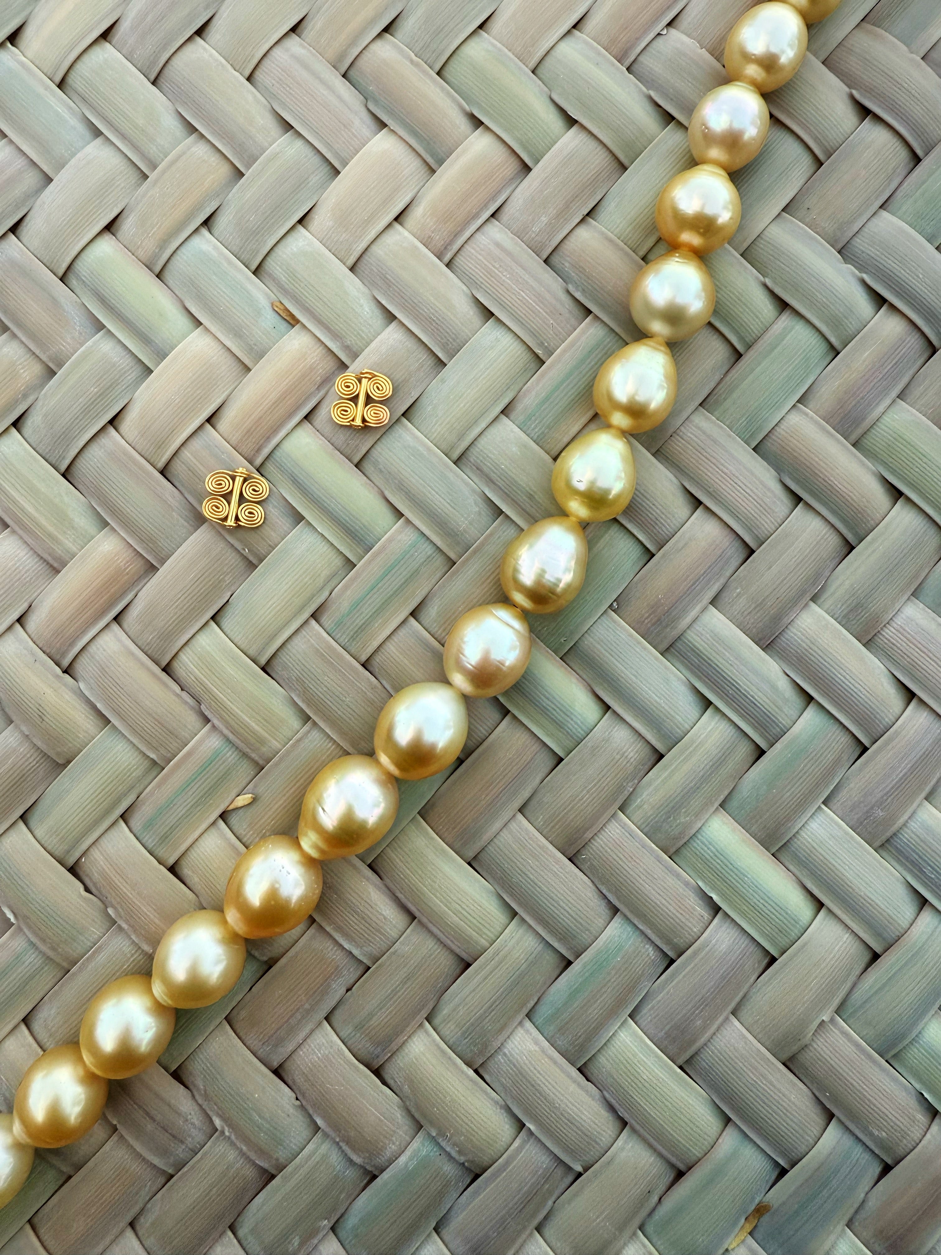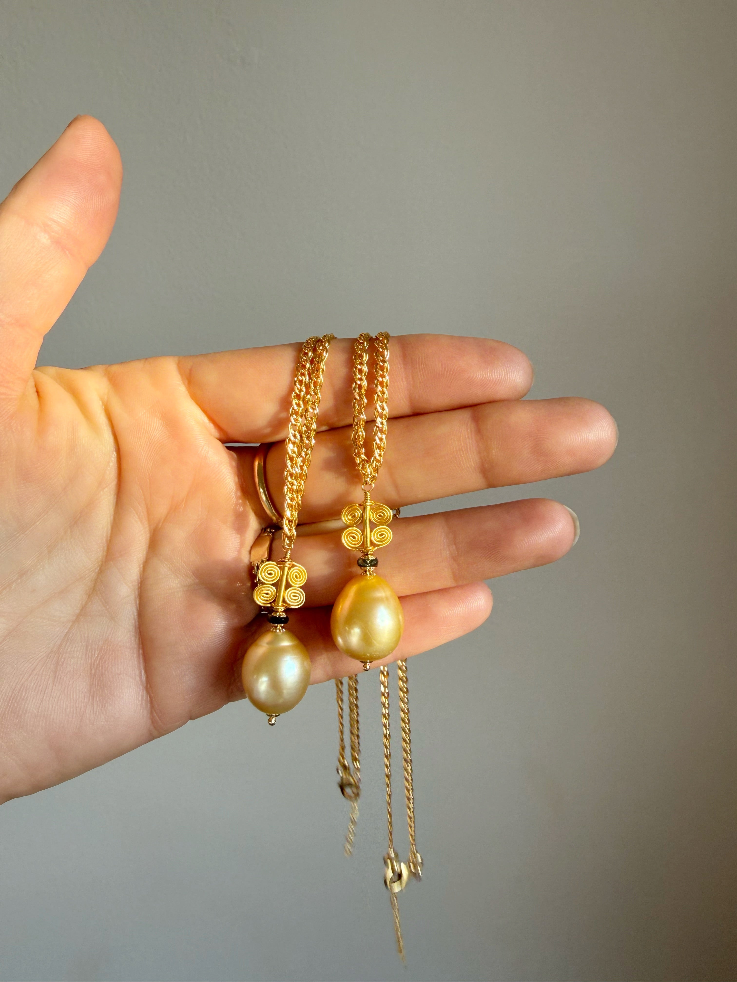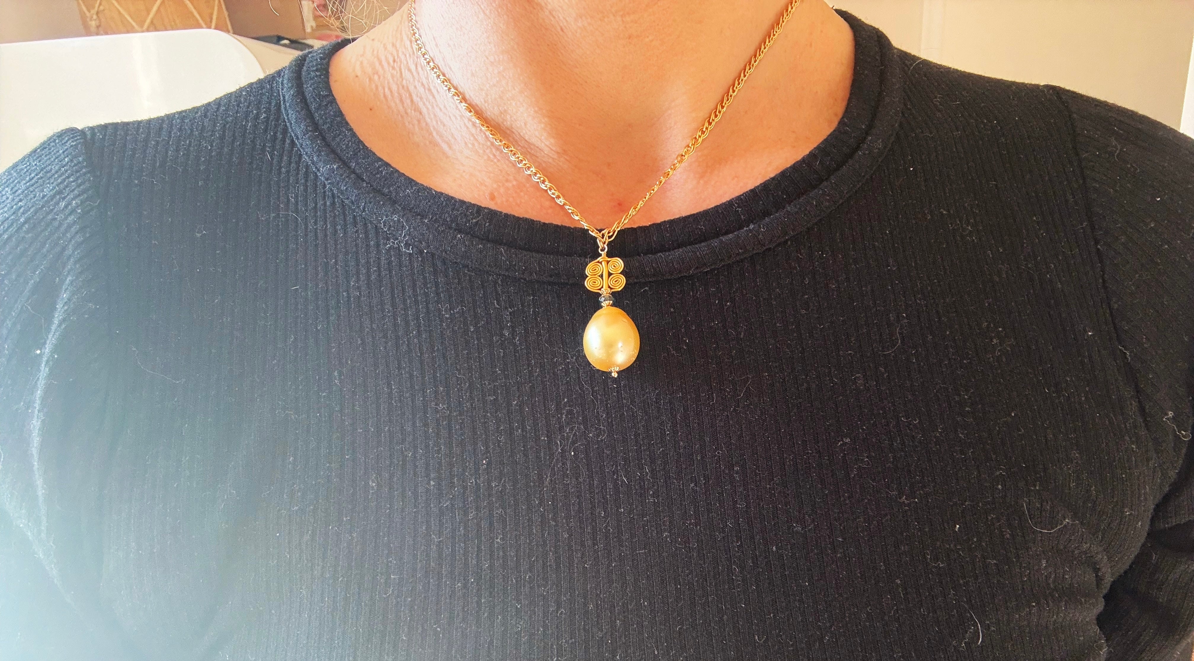 At the center of this piece is a golden South Sea pearl from Australia: an orb of lunar light, rich with warmth, depth, and quiet radiance.