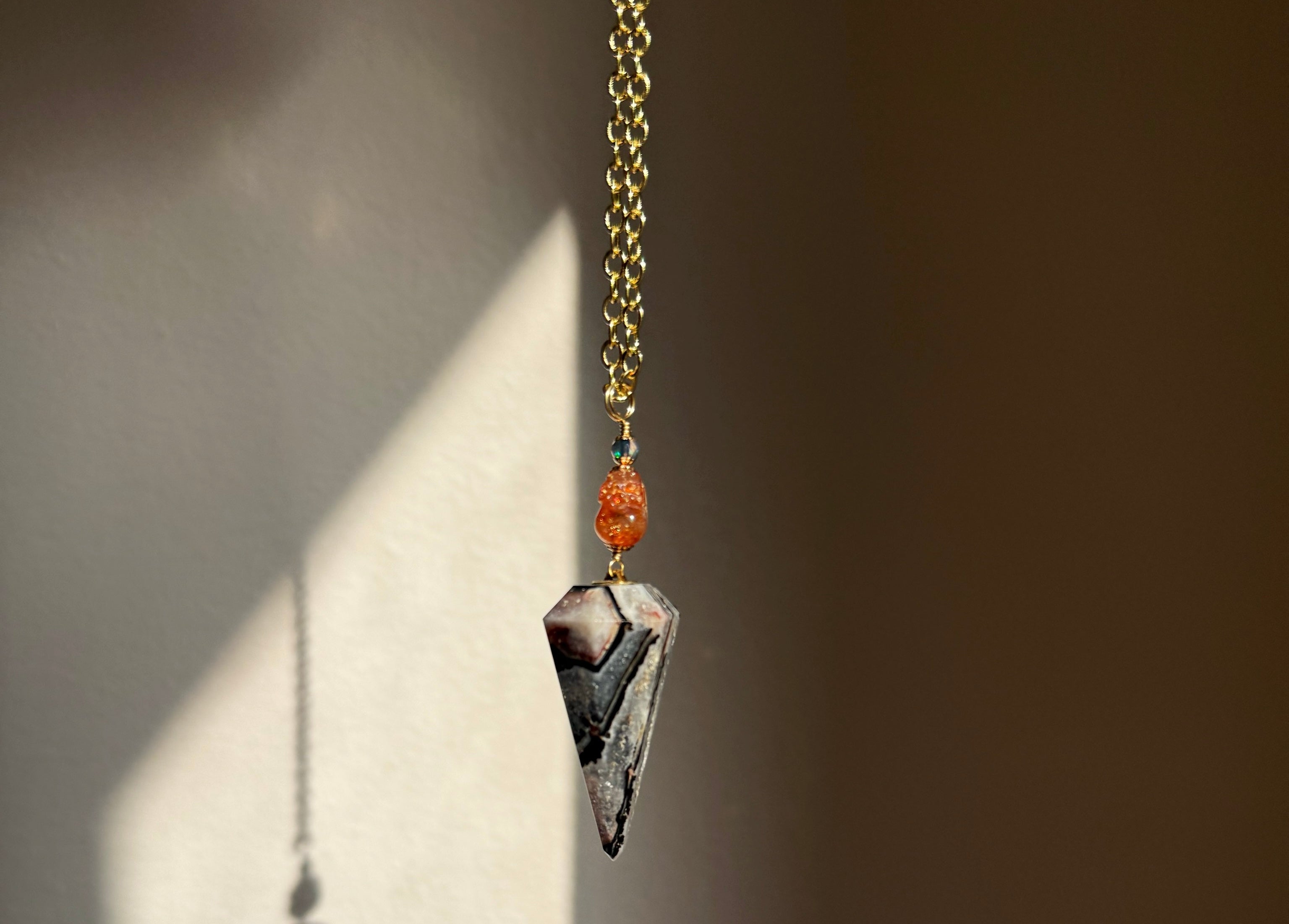 Sardanoyx of the highest order - layred with reds and quartz and cavities of light, paired with a Sunstone that is carved into the shape of a Fu Dog ancient mythical Lion resting on top as guardian.