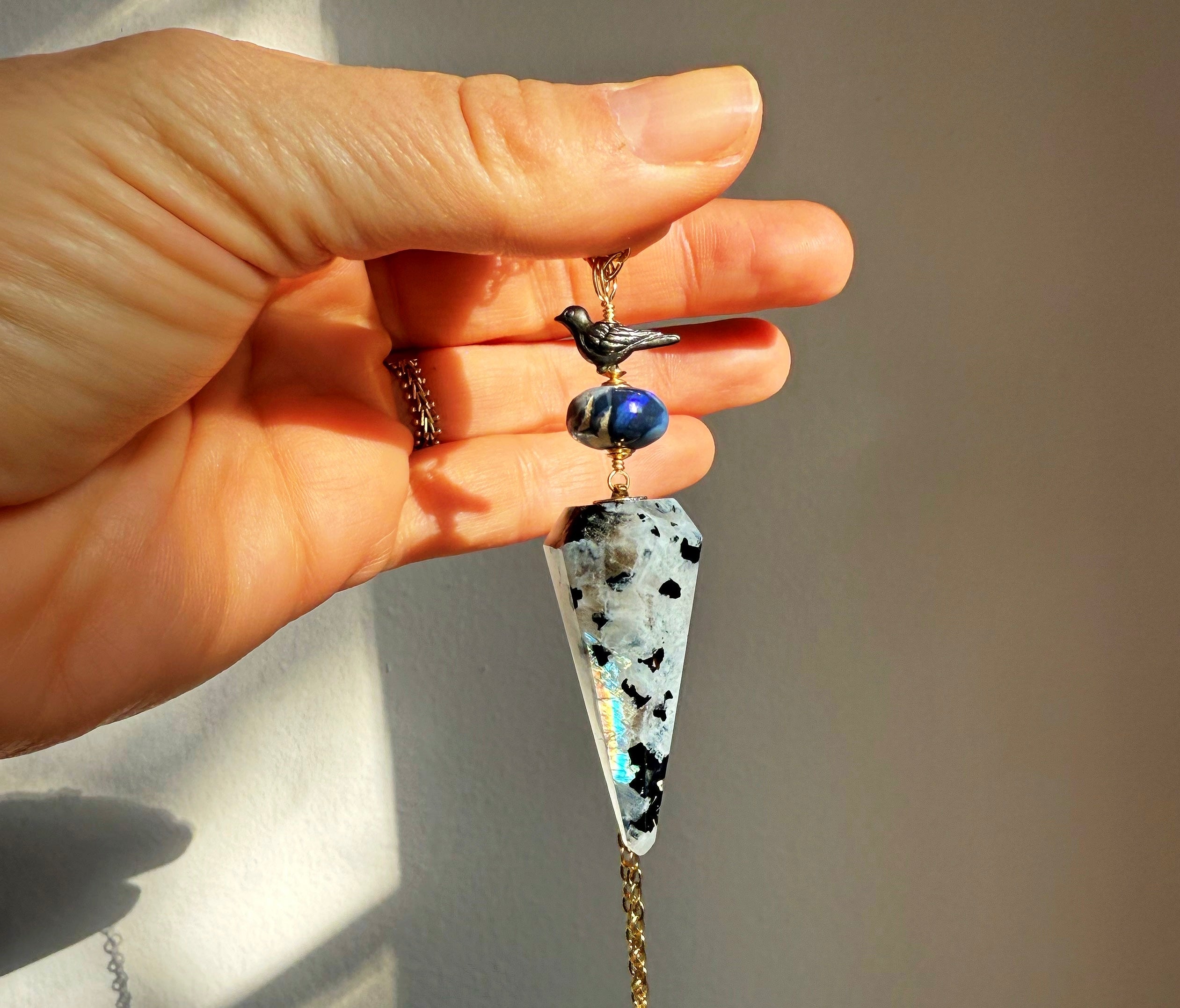 Mini black bird perched as guardian and omen, is the messenger of the unseen. Across mythologies, black birds carry dream-messages, magic, and prophetic sight.