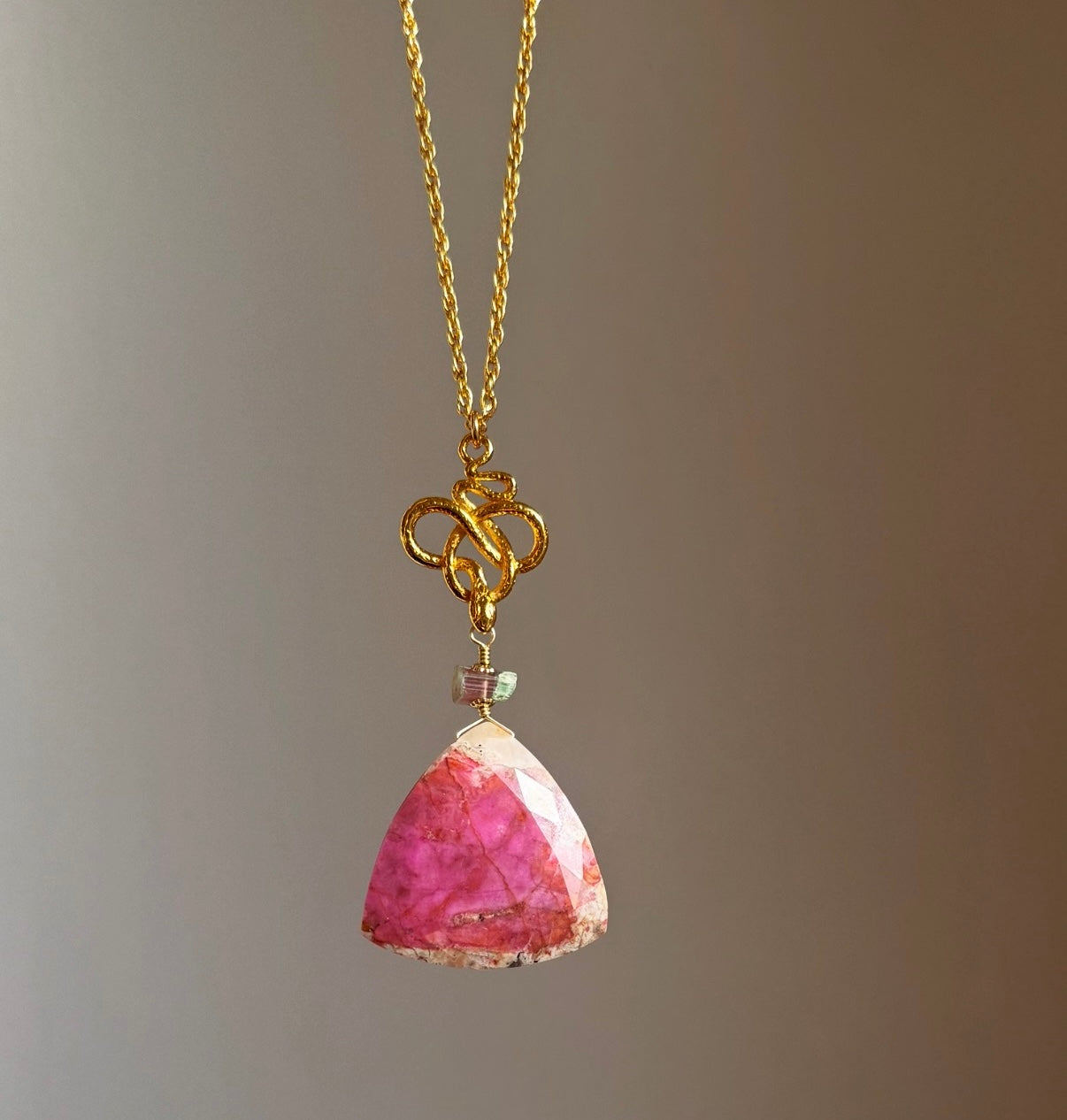 22k gold plated serpent talisman with opal and tourmaline on 14k gold fill rope chain