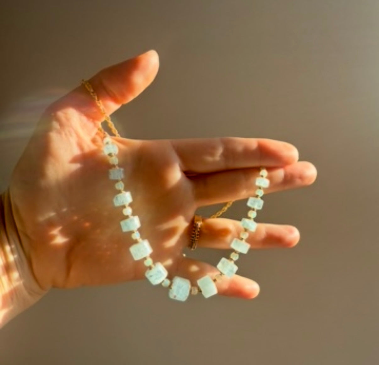 Aquamarine, the stone of truth and clear communication, meets opal, the stone of prophecy and light refraction.....together forming an archetype of intuition made visible.
