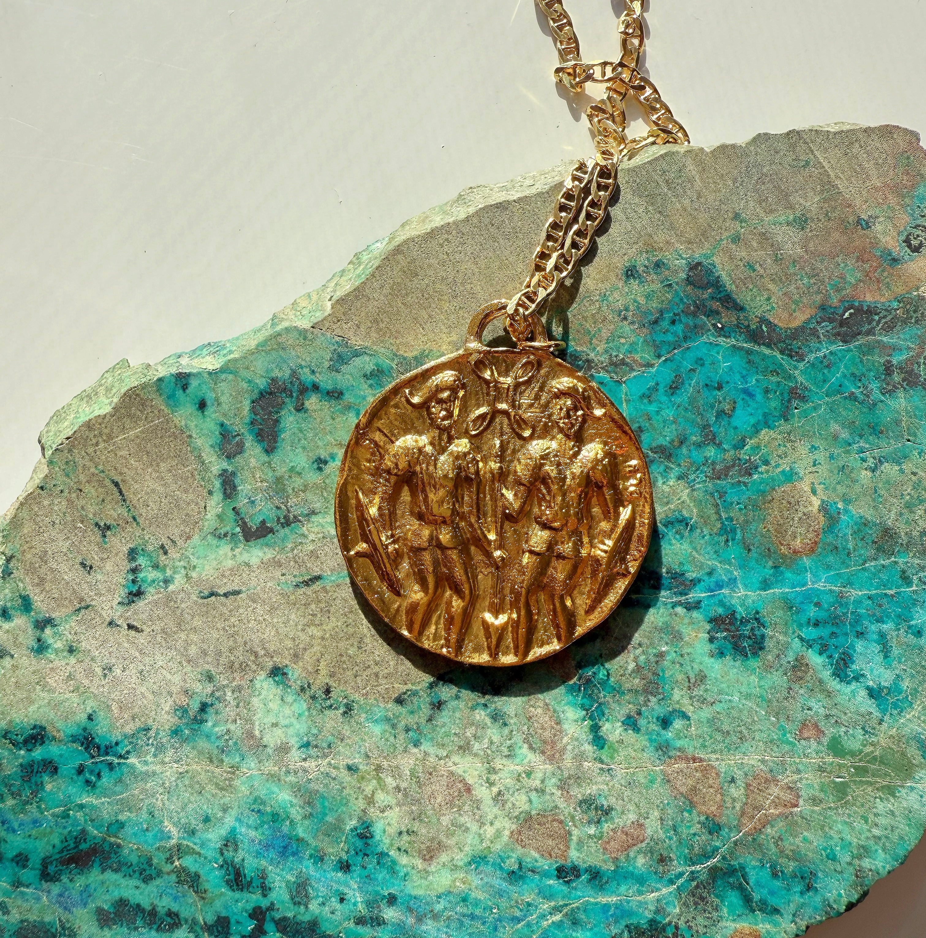 One of a Kind vintage French Zodiac Pendant that we had gold plated in 22k gold and put on gold plated mariner chain as it called for this perfect matching.